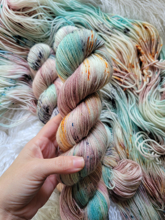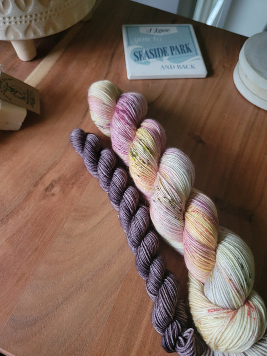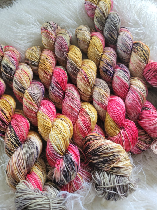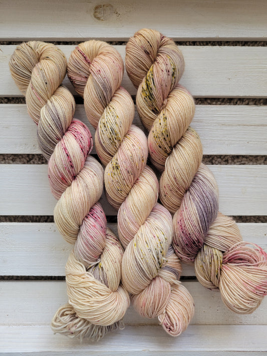 These colorways are dyed to order and may not be in stock when you place your order. Because of this, you can ensure that all of your yarn will be dyed together in the same "batch" to ensure skeins are similar to be used together. However, because these skeins are dyed specifically for you, please note that these skeins could take up to four weeks before shipping. While yarn typically gets out well before then, life happens, so if you're on a tight deadline, this may not be best choice.