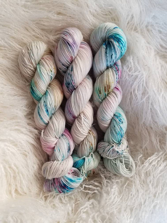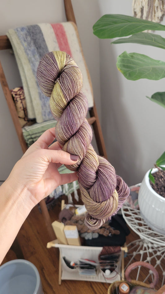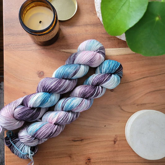 These colorways are dyed to order and may not be in stock when you place your order. Because of this, you can ensure that all of your yarn will be dyed together in the same "batch" to ensure skeins are similar to be used together. However, because these skeins are dyed specifically for you, please note that these skeins could take up to four weeks before shipping. While yarn typically gets out well before then, life happens, so if you're on a tight deadline, this may not be best choice.
