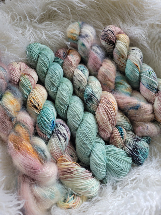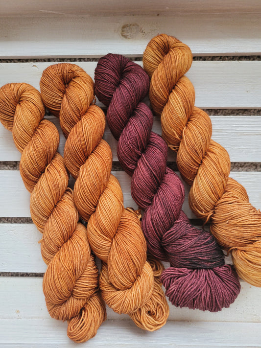 These colorways are dyed to order and may not be in stock when you place your order. Because of this, you can ensure that all of your yarn will be dyed together in the same "batch" to ensure skeins are similar to be used together. However, because these skeins are dyed specifically for you, please note that these skeins could take up to four weeks before shipping. While yarn typically gets out well before then, life happens, so if you're on a tight deadline, this may not be best choice.