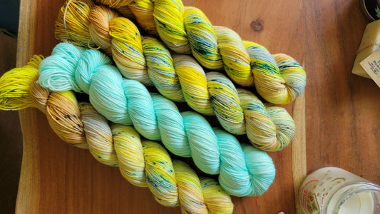 These skeins are already dyed and ready to ship - perfect for someone who is looking for yarn in a pinch. These skeins may be leftover from previous batches, but are perfect for small numbers of skeins without the wait.