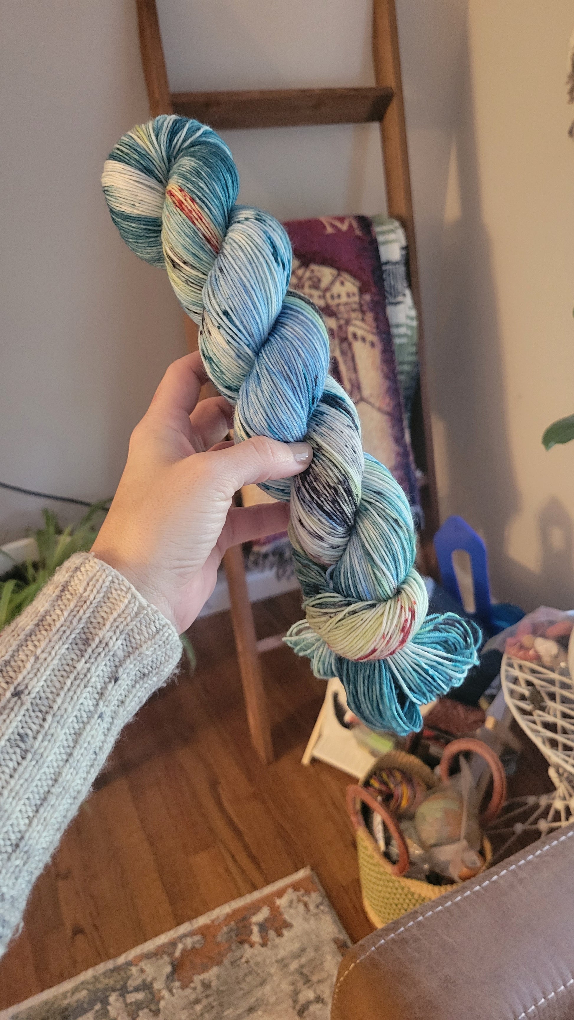 This variegated colorway is a pre-order and will ship out at the end of April. This colorway can be purchased as only yarn, or a yarn and charm combination.