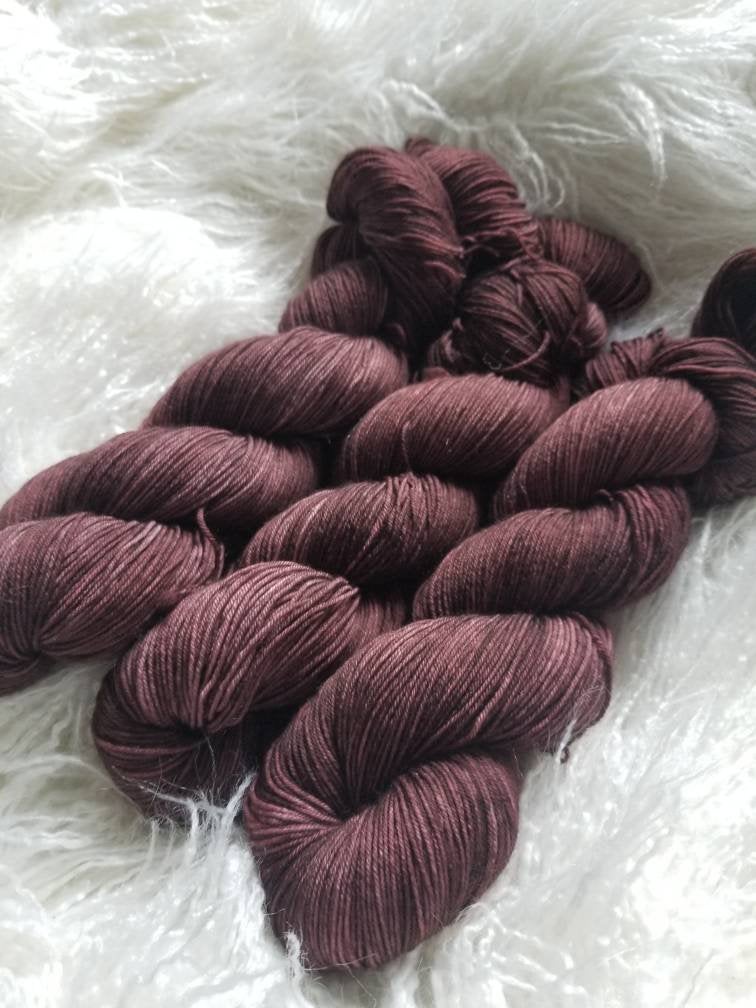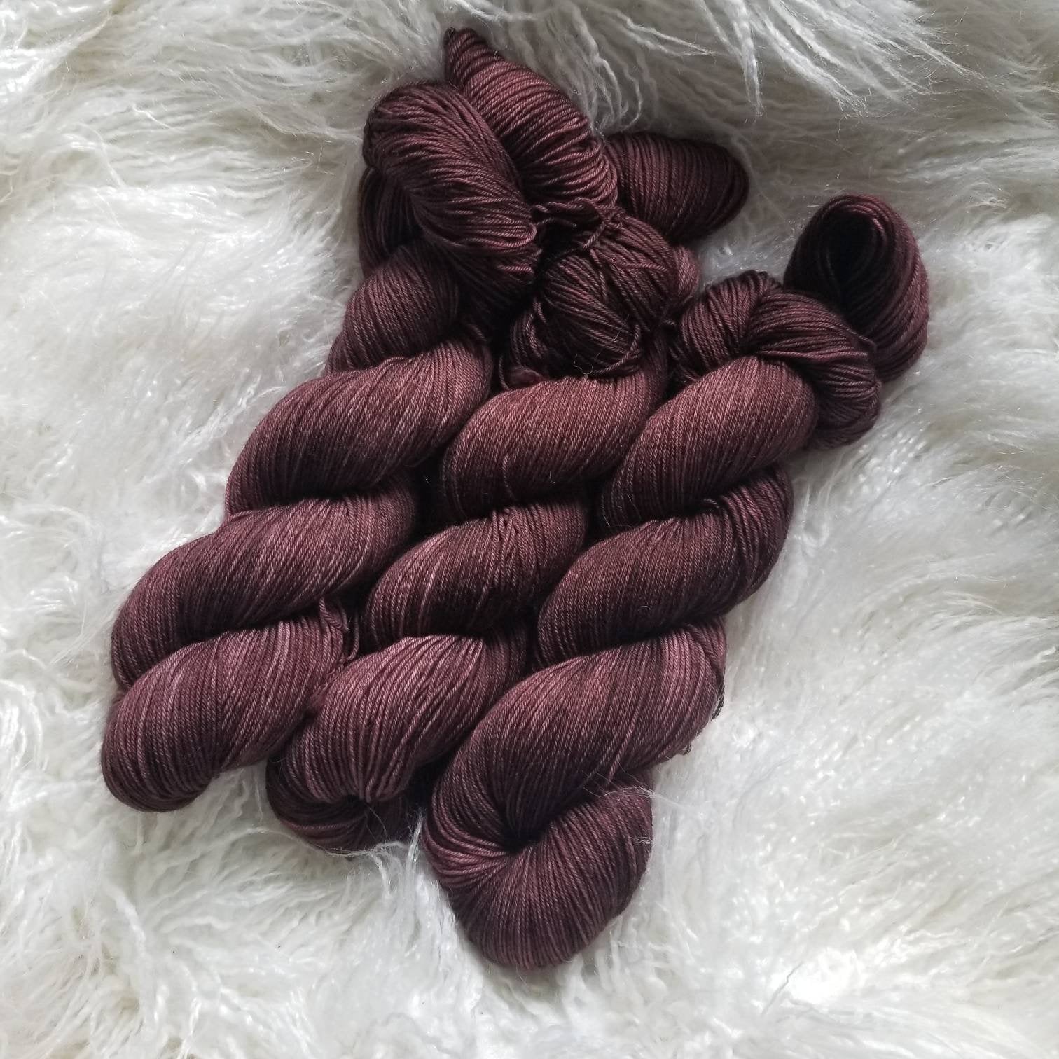 This tonal colorway is the richest purple-brown with warm pink undertones. It is dyed to represent the deep color of the hundreds of açaì bowls I consume throughout the year, especially in the summer months. It would be perfect alone or paired with another skein for contrast (surf, mauvelous, cheeky).