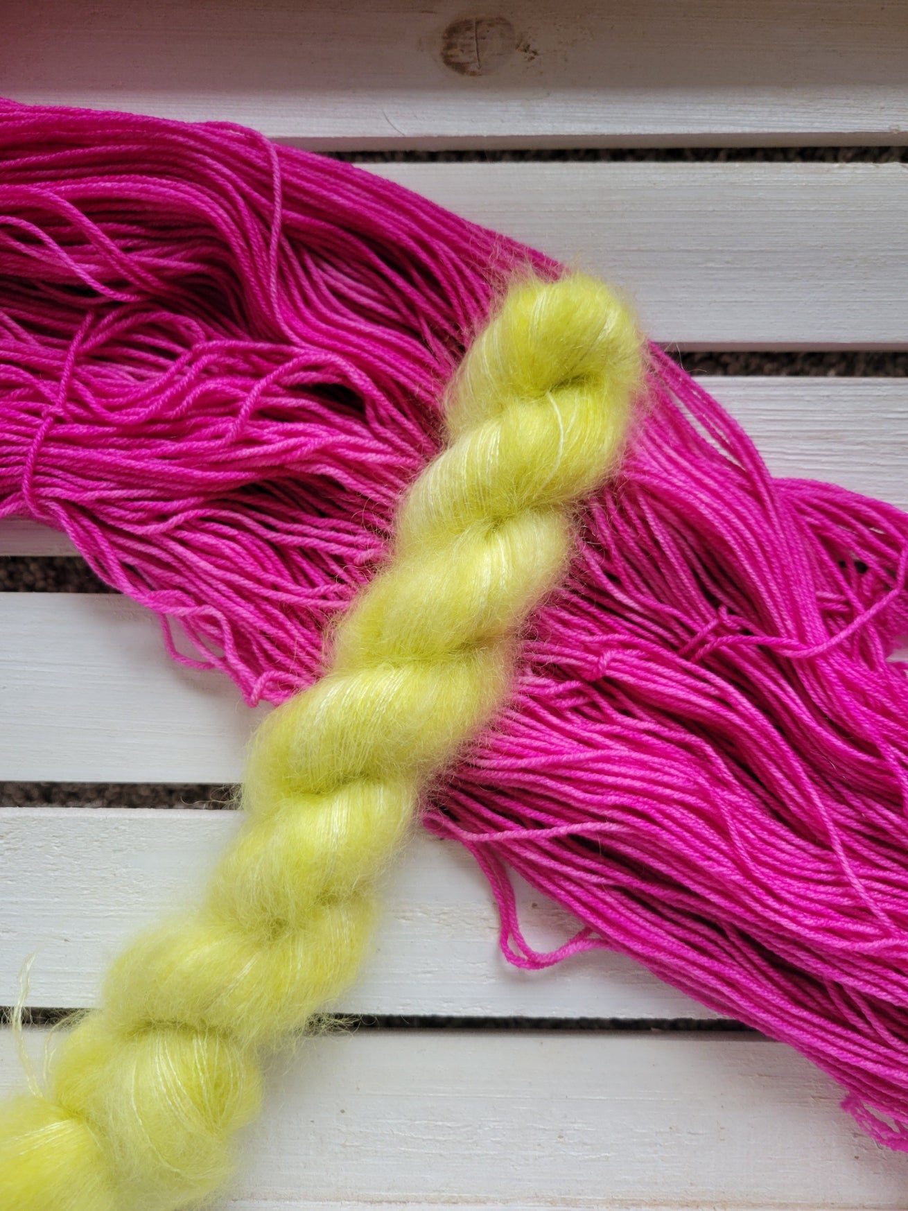 This kit includes two colorways on my 420 and cloud base with high contrast created with the Star Babe beanie in mind! These kits are a preorder that will be shipped out during the first week of April.