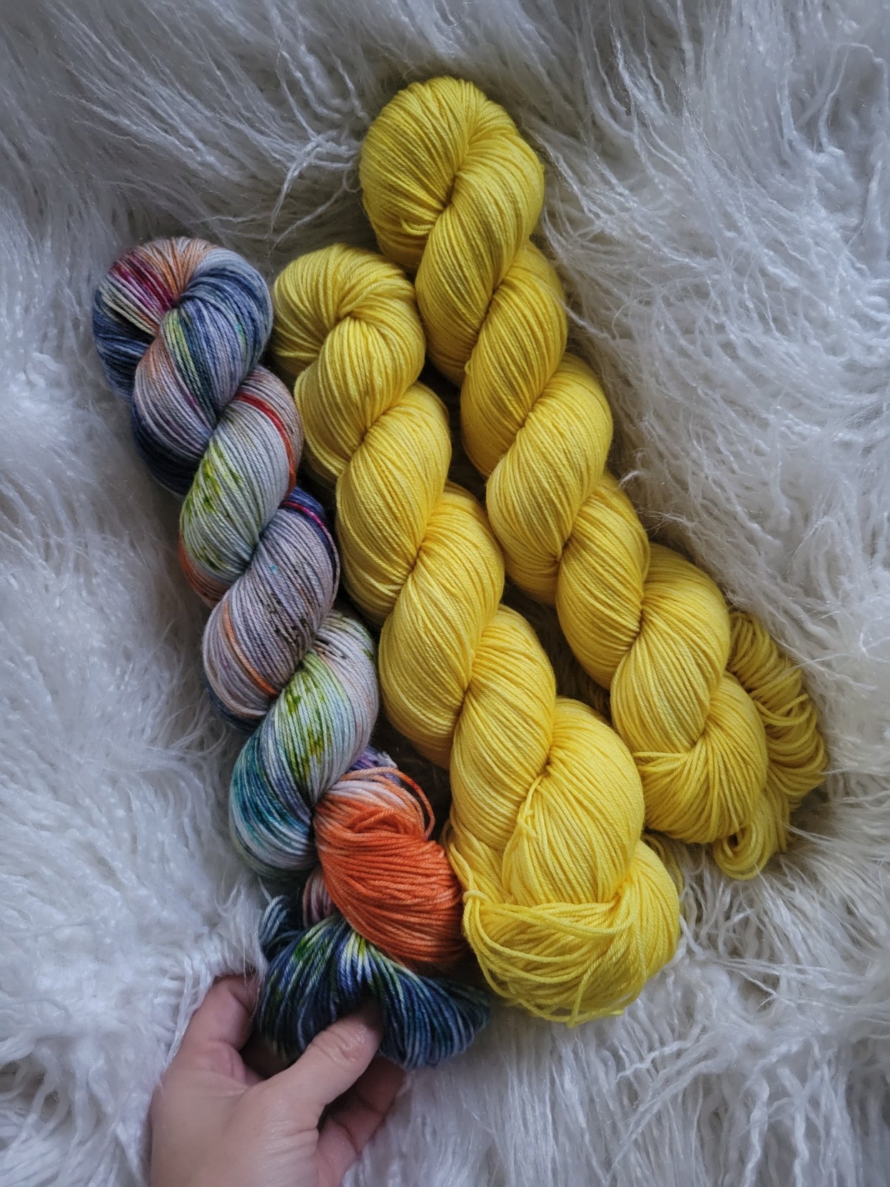 This kit includes two colorways inspired by the Twisted Tea Shirt designed by me! These kits are dyed to order and will typically be dyed within a week of ordering, with a max of two weeks.