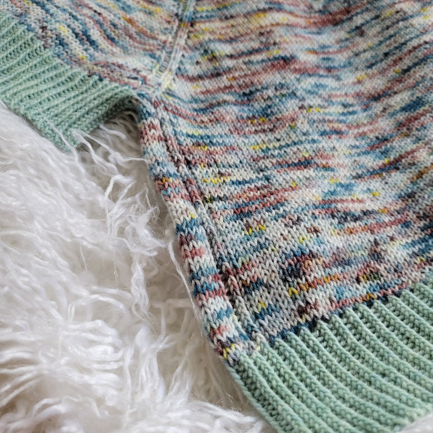 Size 3-6 includes two skeins of the Main Color, and one skein of the Contrasting Color on my Sunfish base. This includes 926 yd/200g of MC, and 463yd/100g CC.