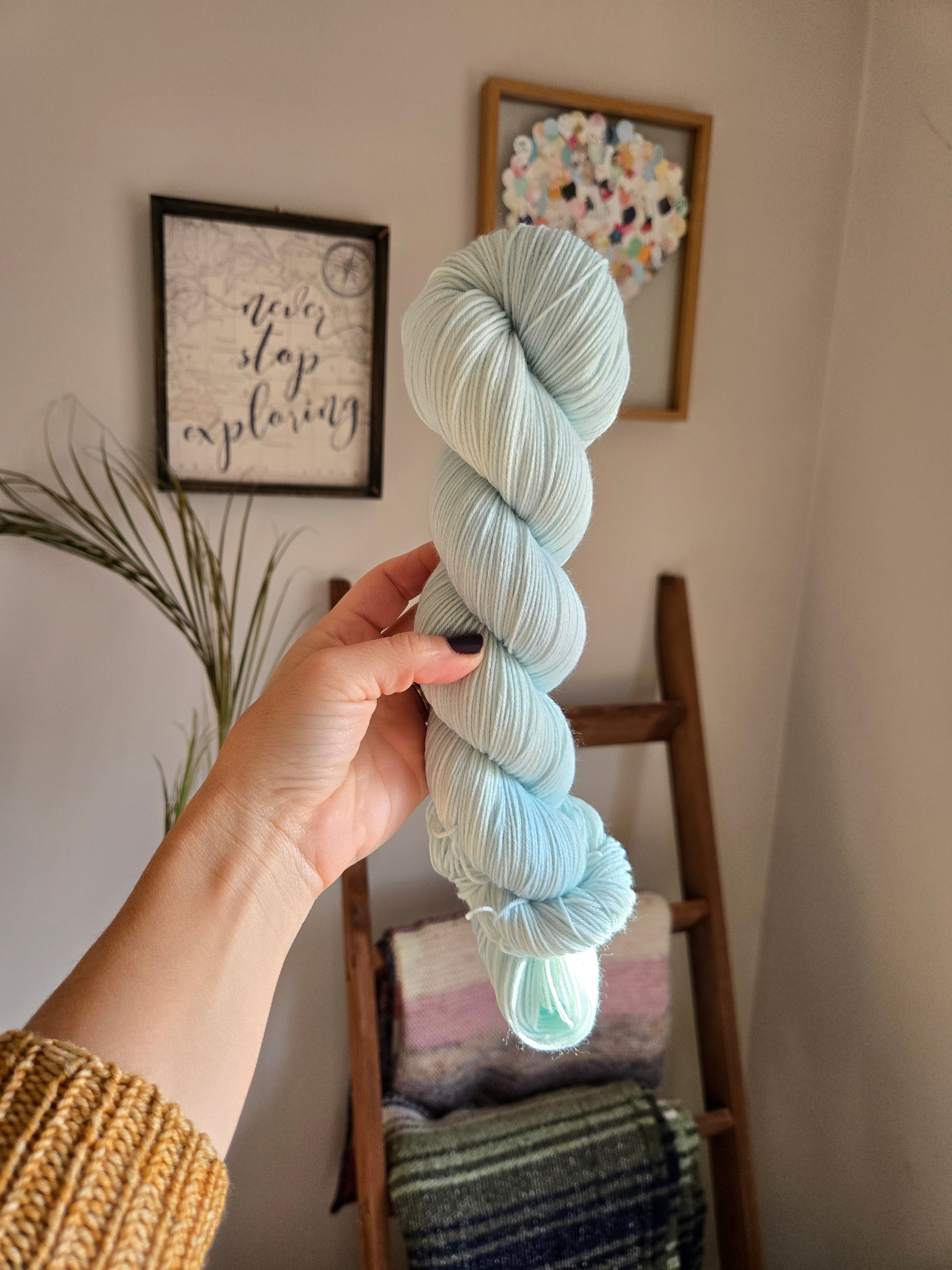 This icy blue tonal was dyed as part of the wolfpack collection to capture the snow-topped mountains and coordinates with many colorways in the collection.