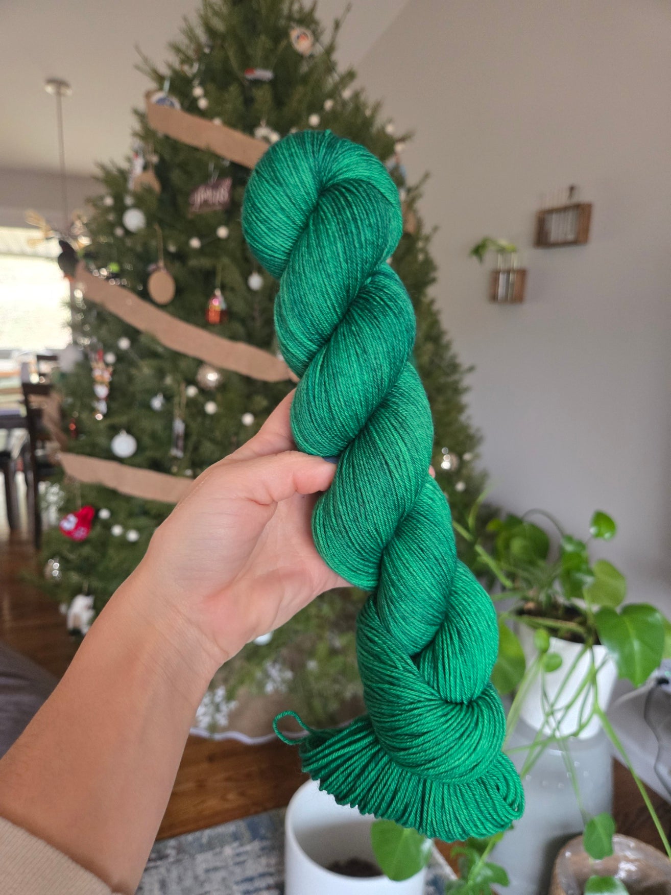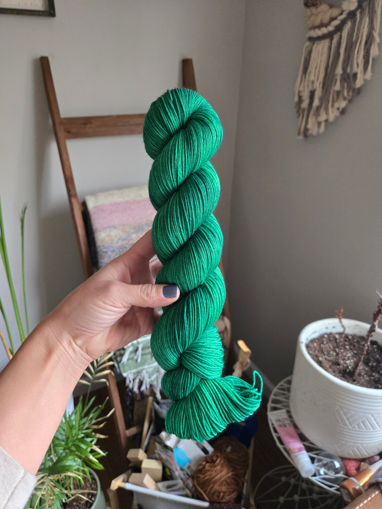 There are buildings as tall as quoxwood trees, dress salons and libraries, palaces, museums - a hundred strong. There are wonders like I've never seen. It's all grand and it's all green. I think we've found the place where we belong. Inspired by the emerald city itself, this brilliant emerald tonal would look beautiful in any project on it's own or as a contrast with any of the other wicked colorways. It also is a beautiful anchor for the end of this 4 colorway fade.