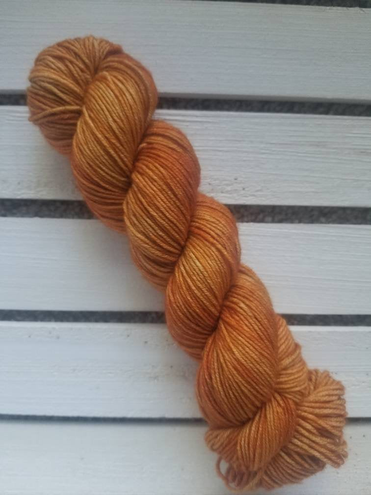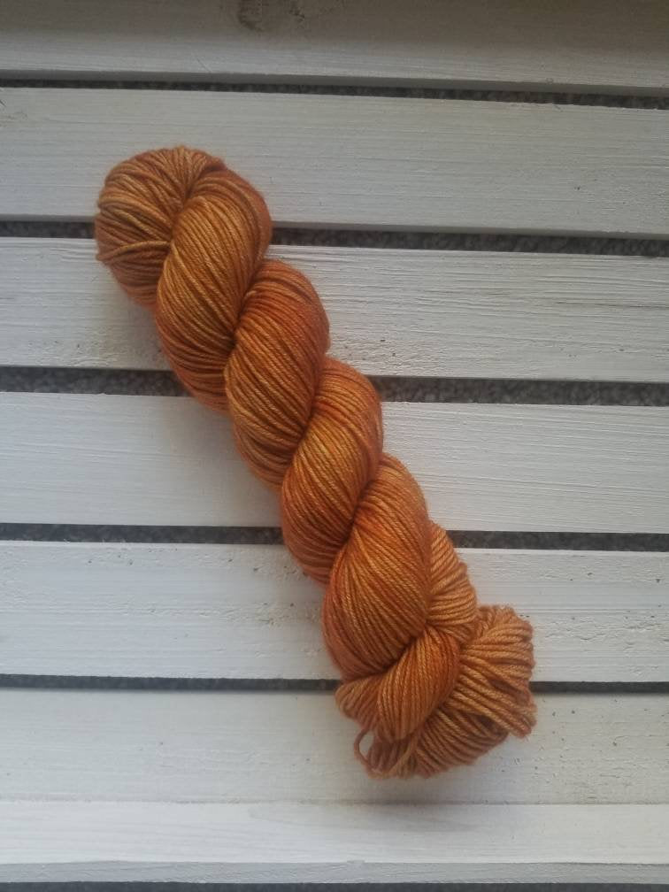 This tonal orange is inspired by my love of all things burnt orange and a slightly less rich version of Rusted Spokes. This colorway includes a more orange (and less red) mid-tone slightly "dirty" or muddied color (similar to many of my other tonals) that creates a more muted and earth tone. This colorway would pair perfectly with almost any other tonal in the shop or many of my beach inspired variegated and speckled colors. Although it reminds me of the perfect autumnal tonal, I think this colorway transcends all seasons and would be wonderful and warm any time of year. This color is shown on my 420 base.