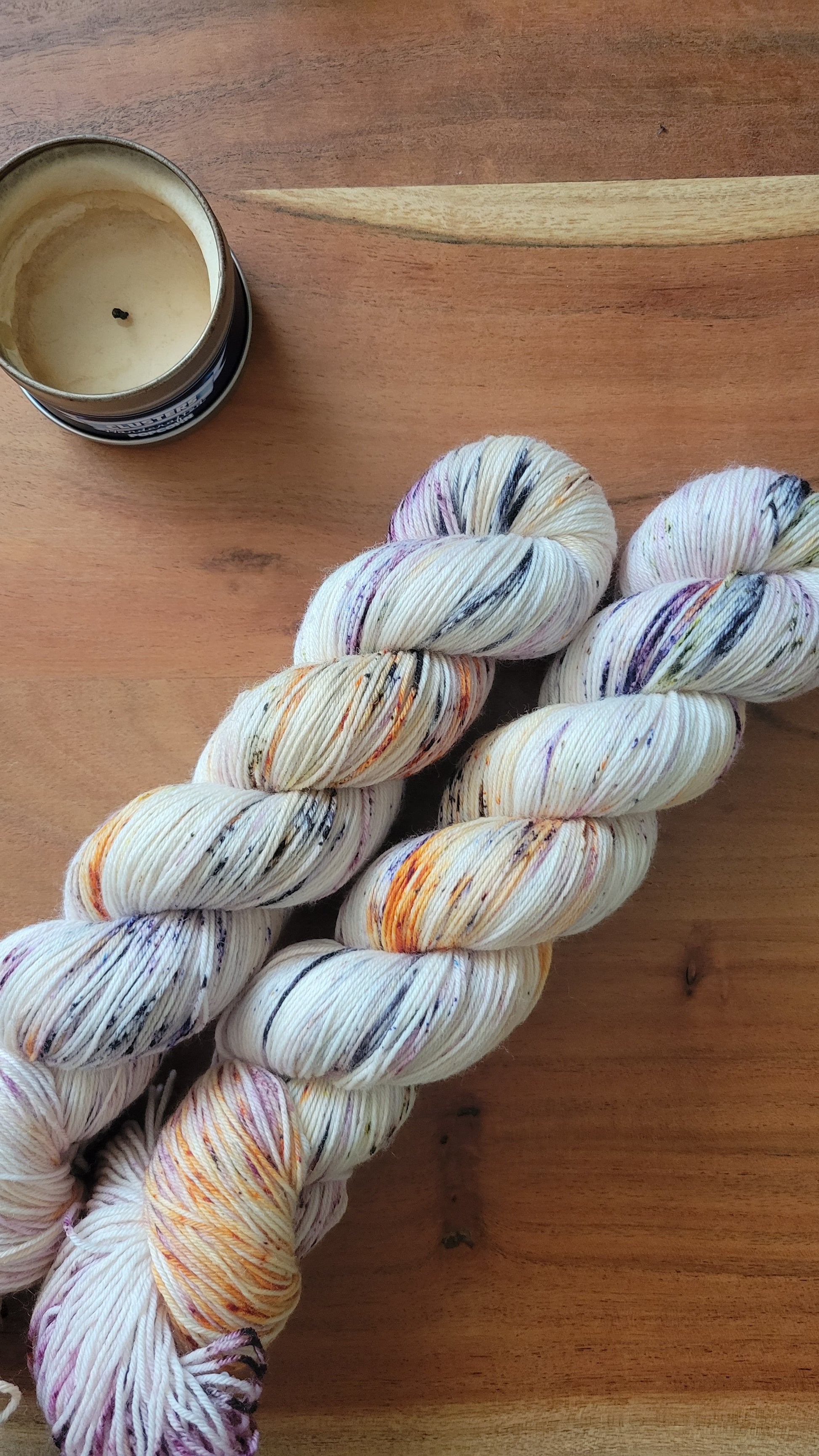 Sisters, we fly! This Hocus Pocus inspired colorway includes all of the autumnal speckles and represent the Sanderson Sisters. Speckles include burgundy, black, orange, green, yellow, and purple. This colorway would fade beautifully with This is Halloween, Mischief Managed, Sugar Plum, or Quit Your Wine-ing, or pair well with a tonal depending on your mood - Oogie Boogie or Troll Boogies for a spooky project, or I Open at the Close, Rusted Spokes, Olive Juice for a more moody fall feel. This color is shown on my sunfish, 420, and laser base.