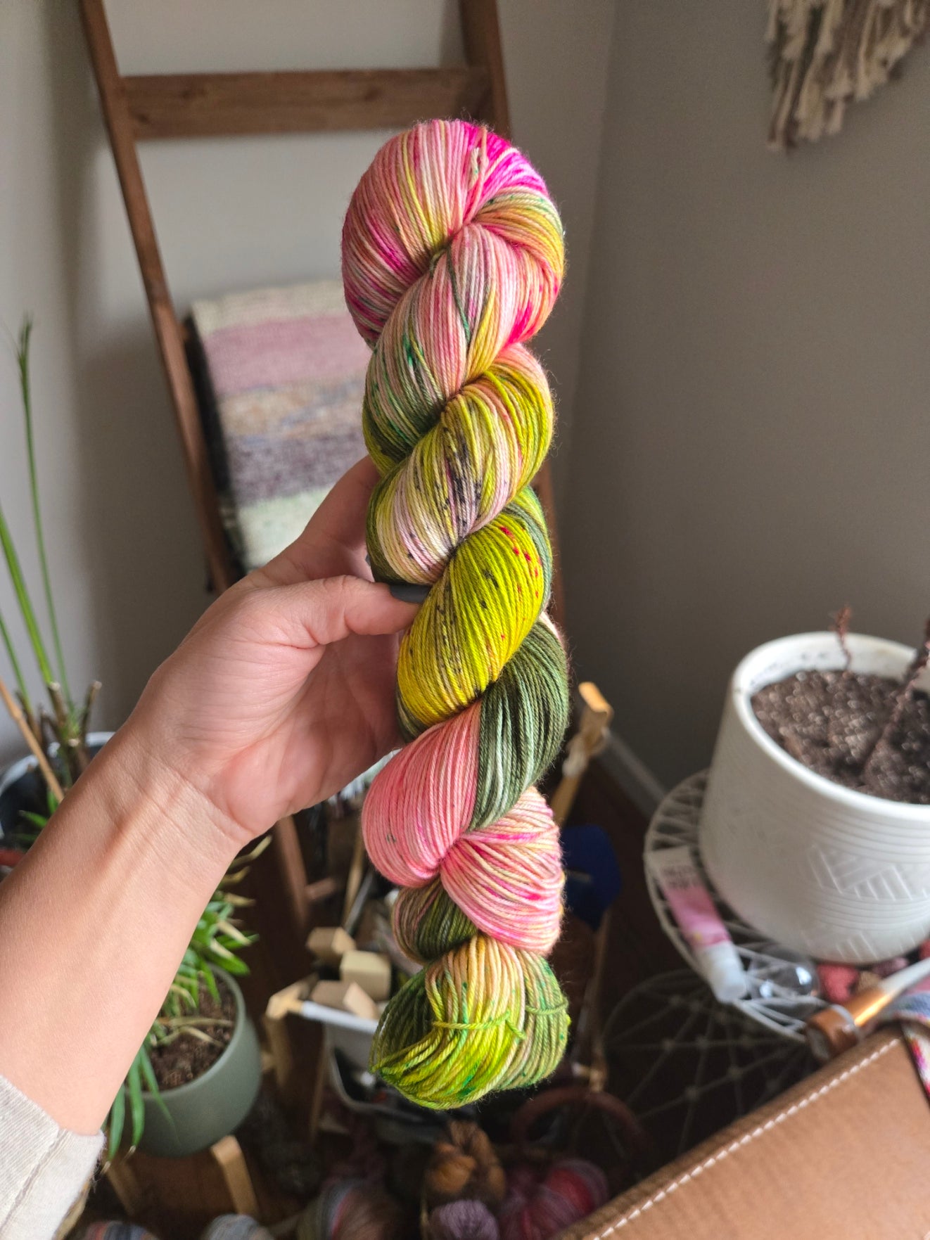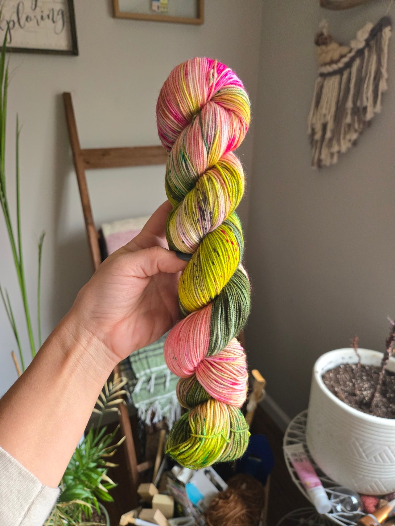 We're just two friends. Two good friends. Two BEST friends - having a wonderful day! This is the season of gal pals and female friendship, and what better way to celebrate than with our favorite pair - Elphaba and Glinda. This variegated colorway includes layers of greens and pinks of different tones and it a stunning colorway of balance and pops of color.